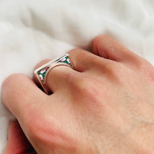 ANILLO OJAL MICROMOSAICO Y AGUAMARINA